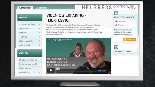 På Helbredsprofilen kan man finde cirka 225 korte videofilm (produceret af MindMakers) om de to sygdomme. Videoerne handler overordnet om hvad KOL og hjertesvigt er, og hvordan man kan lære at leve med sygdommen/sygdommene (ofte er man ramt af både KOL og hjertesvigt).
